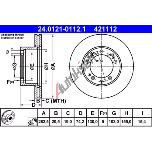 ATE Brzdový kotouč - 282 mm AT 421112, 24.0121-0112.1