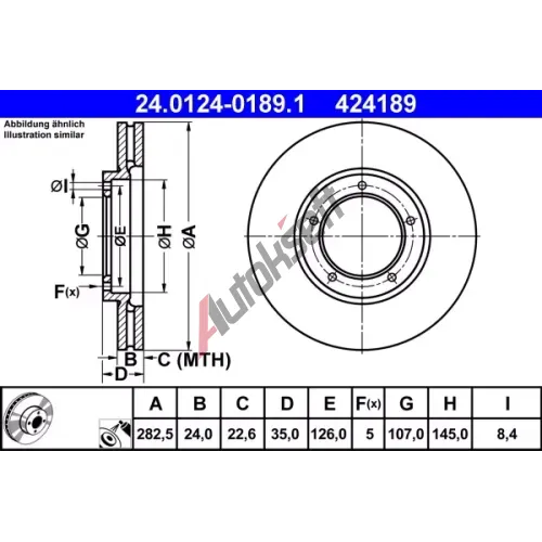 ATE Brzdový kotouč - 283 mm AT 424189, 24.0124-0189.1