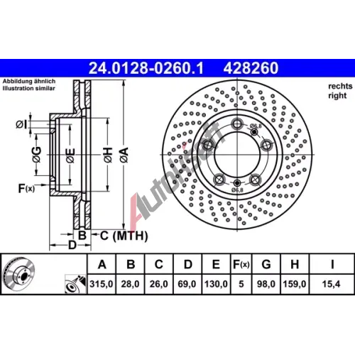 ATE Brzdový kotouč - 315 mm AT 428260, 24.0128-0260.1