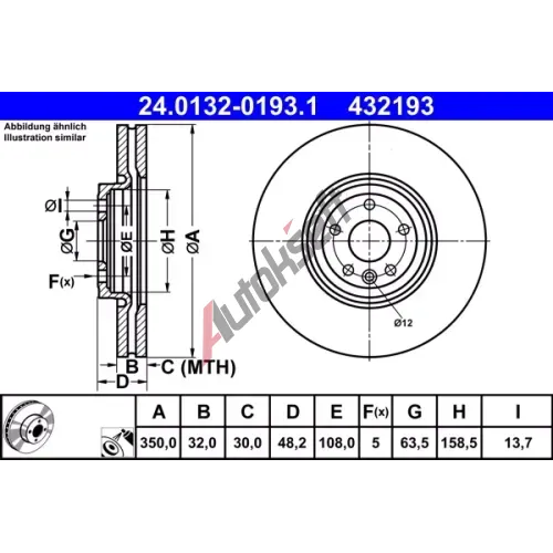 Informace o montáži: Important: Observe Fitting Instructions ATE ‐ Brzdový kotouč - 350 mm AT 432191