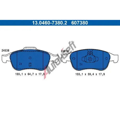 ATE Sada brzdových destiček AT 607380, 13.0460-7380.2