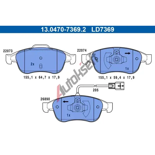 ATE Sada brzdových destiček ATE Ceramic AT LD7369, 13.0470-7369.2