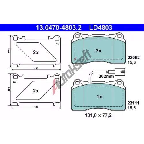 ATE Sada brzdových destiček Ceramic AT LD4803, AT 23111