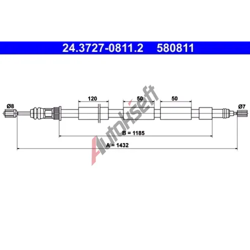 ATE Tažné lanko - parkovací brzda AT 580811, 24.3727-0811.2