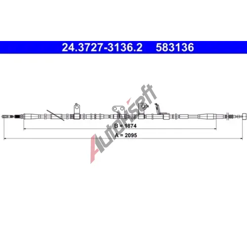 ATE Tažné lanko parkovací brzdy AT 583136, 24.3727-3136.2