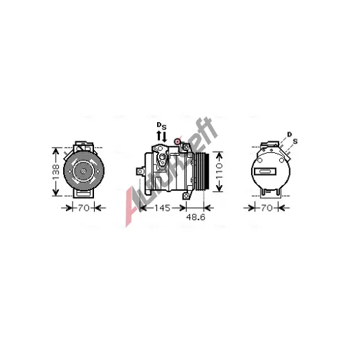 řemenice - ∅ [mm]: 110Zdvihový kompresor [ccm]: 188Kompresor -ID: 10S17COlej do kompresoru: PAG 46Tvar zásuvky: kulatýDoplňkový výrobek / doplňkové info 2: bez kompresorového oleje PAGVpusť [mm]: 18,3Odtok [mm]: 15,5Počet drážek: 5Počet pólů: 1Olejová náplň - množství (ml): 160Provedení zásuvky: MaleChladicí látka: R 134aNapětí [V]: 12Doplňkový výrobek / doplňkové info 2: s magnetickou spojkouEAN:5707286353237BMW6452692165064528377067JPB000110LR012793LAND ROVER6452692165064528377067JPB000110LR012793Konkurenční kódy
