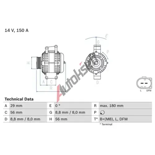 | Generátor-nabíjecí proud [A]: | 150 |