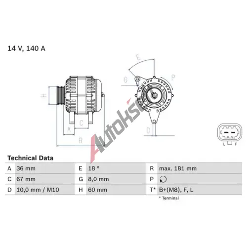 Provedení palubní sítě: pro vozidla s 12 V palubní sítíNapětí [V]: 14Generátor-nabíjecí proud [A]: 140řemenice: s volnobeznou remeniciřemenice - ∅ [mm]: 60Počet žeber: 6Svorka: M8 B+Provedení zástrčky - ID: L-DFM Plug 248Délka 1 [mm]: 36Délka 2 [mm]: 36Vrt - ∅ 1 [mm]: 10Délka 3 [mm]: 69OPEL12022641202338951284095515958