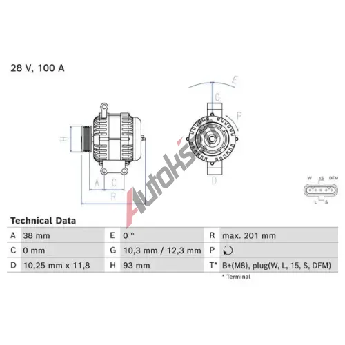 8 179,-ve skladuNapětí [V]: 28Generátor-nabíjecí proud [A]: 100Způsob upevnění: Přímé upevněníProvedení generátoru: bez vakuového čerpadlaOdstup mezi řemenicí a generátorem [mm]: 38,2Směr otáčení: směr otáčení ve smyslu otáčení hodinových ručičekřemenice: s vícenásobnou řemenicíPočet drážek: 8řemenice - ∅ [mm]: 93Svorka: B+(M8)Provedení zástrčky - ID: 82Délka [mm]: 205Doporučené rozšíření opravy: Klínový řemen/klínový žebrový řemenEAN:4047026815771Použitá čísla: ALT 28V 100A (R)Skladem ve skladu