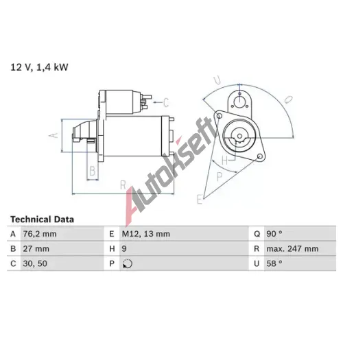 BOSCH Startér BO 0986016780, 0 986 016 780