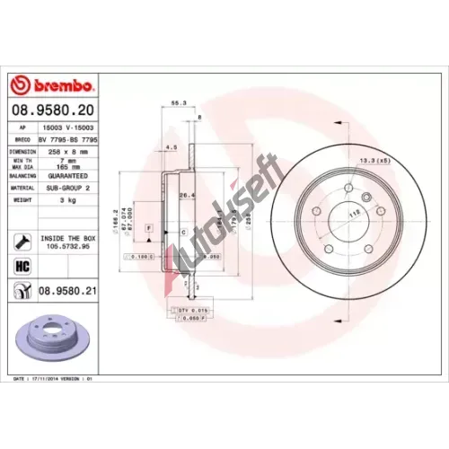 BREMBO Brzdový kotouč - 258 mm BRE 08.9580.20, 08.9580.20