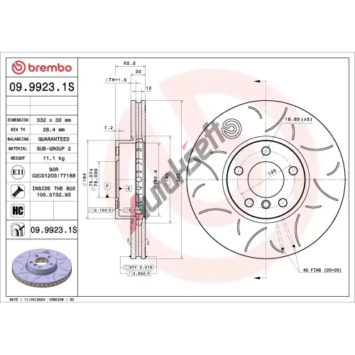 BREMBO Brzdový kotouč - 332 mm BRE 09.9923.1S, 09.9923.1S