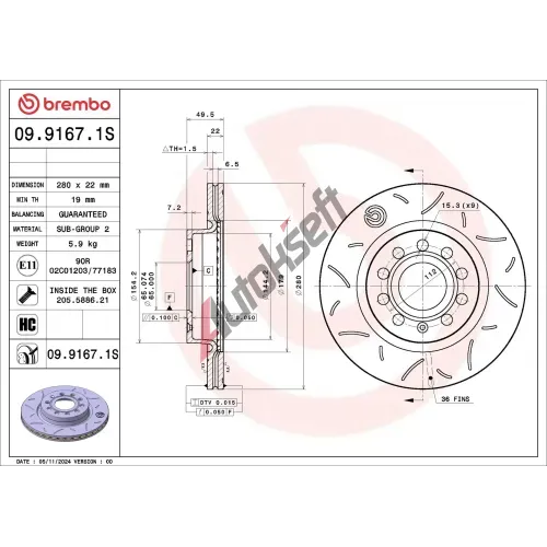 Informace o montáži: Important: Observe Fitting Instructions ASHIKA ‐ Brzdový kotouč - 280 mm ASH 60-00-0934C