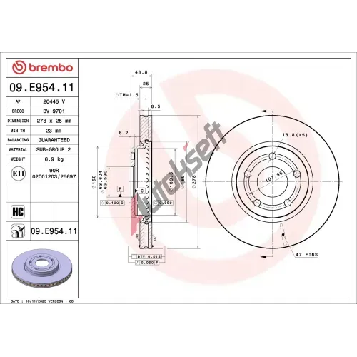 939,-ve skladuSrovnávací průměr: 278Vnější průměr [mm]: 278Síla brzdového kotouče [mm]: 25Minimální tloušťka [mm]: 23Výška [mm]: 43,9Typ brzdového kotouče: chlazenýCentrovací průměr [mm]: 63,6Počet děr: 5Povrch: nátěrZpracování: vysoce nauhličenoSplňuje ECE normu: ECE-R90Průměr vývrtu do [mm]: 13,8EAN:4047026641325Použitá čísla: BD3018Skladem ve skladu