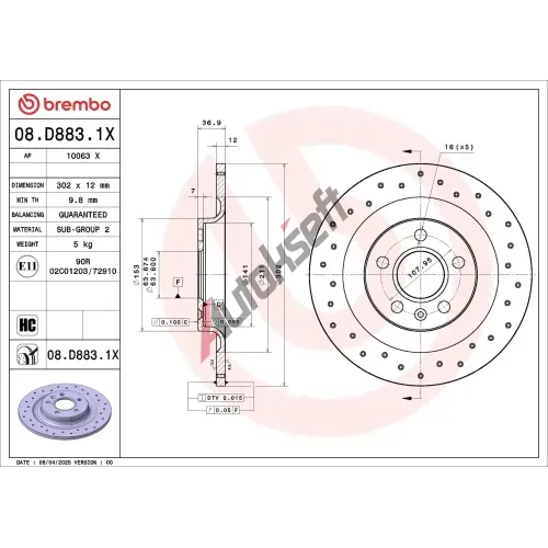 zvětšitBrzdový kotouč BREMBO ‐ BRE 08.D883.11