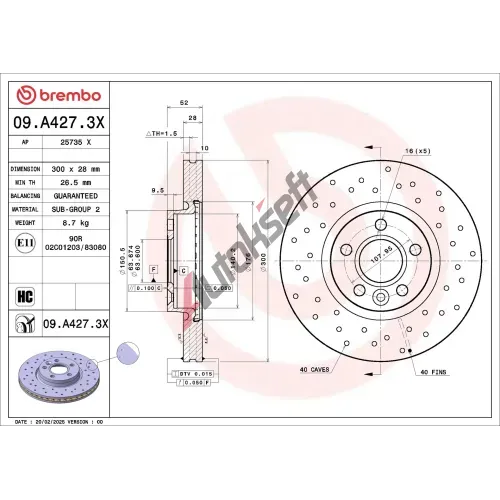 | Typ brzdového kotouče: | děrováno / vnitřně větráno |