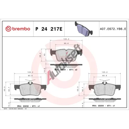 • BREMBO ‐ Sada brzdových destiček BRE P24217