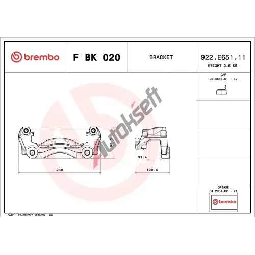 BREMBO Sada držáků brzdových třmenů BRE FBK020, F BK 020