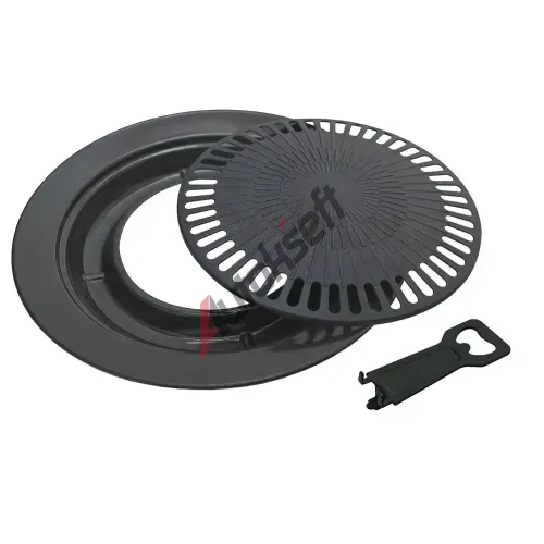 Celý „talíř“ má vnější rozměry 32 cm s výškou 4 cm a je doplněn žlabem pro skapávající tuk. Pro snížení kouřivosti při grilování je vhodné žlab naplnit malým množstvím vody, čímž se zabrání přepalování tuku. Kvalitní smaltovaný povrch talíře umožňuje snadné čištění.