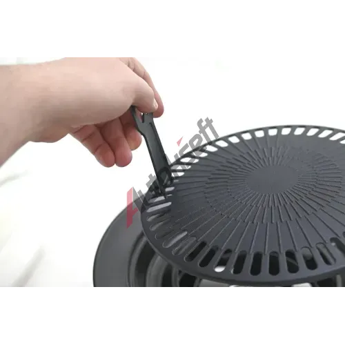 Průměr samotného grilovacího roštu je 25 cm a nabízí dostatečný prostor pro grilování několika porcí současně. Rošt je vyroben z Alu a je opatřen otvory pro skapávání tuku do okrajového žlabu talíře.