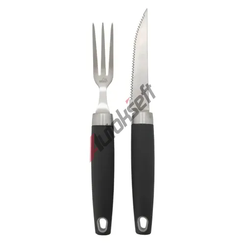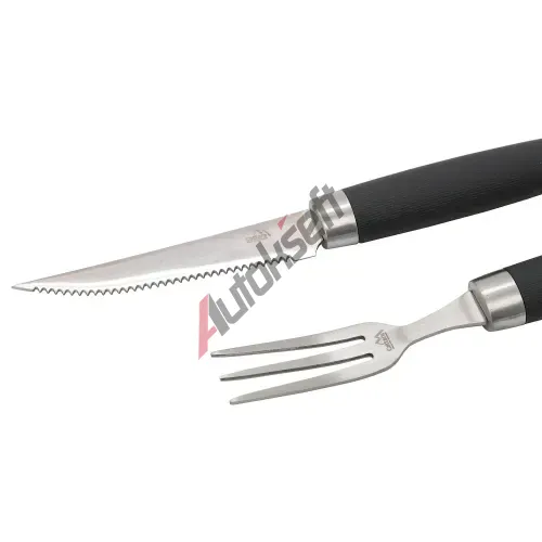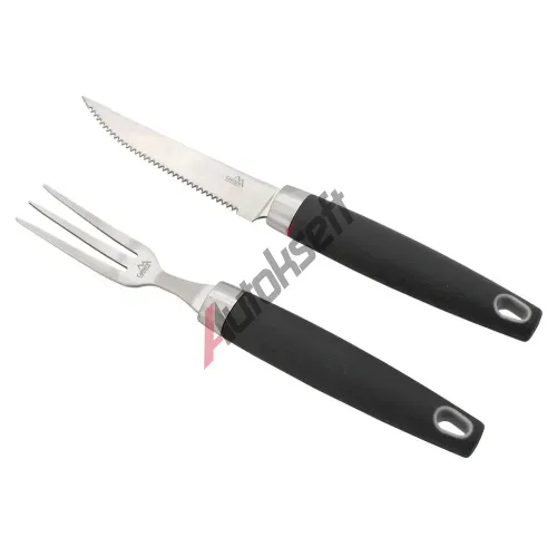 Sada se skládá z 3 hroté vidličky s rozměry 24 x 2,2 x 2 cm a z vroubkovaného nože na steaky s rozměry 25,5 x 2,5 x 2 cm.
