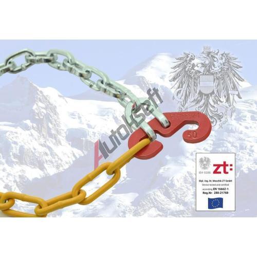 | Sněhové řetězy pro osobní vozidla do hmotnosti 1800 kg; splňující evropské normy včetně v Rakousku vyžadované ÖNORM V 5117. | |