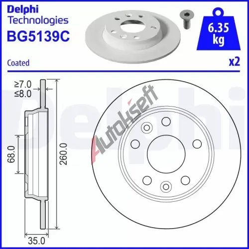 DELPHI Brzdový kotouč - 260 mm DF BG5139C, BG5139C