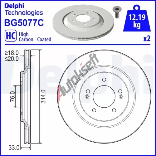 DELPHI Brzdový kotouč - 314 mm DF BG5077C, BG5077C