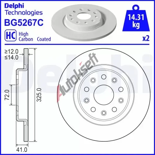 DELPHI Brzdový kotouč - 325 mm DF BG5267C, BG5267C