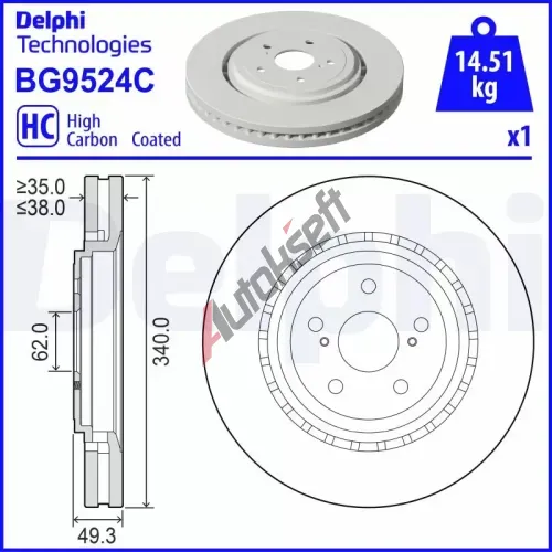 DELPHI Brzdový kotouč - 340 mm DF BG9524C, BG9524C