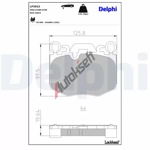 DELPHI Sada brzdových destiček DF LP3923, LP3923