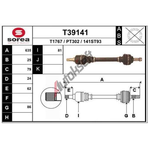 1 609,-ve skladuDélka [mm]: 634Vnější ozubení - strana u kola: 25Vnější ozubení - strana u diferenciálu: 24Vnitřní ozubení, strana u kola: 34Průměr kloubu (strana kola) vnitřní [mm]: 86Průměr kloubu (strana převodovky) vnitřní [mm]: 81Velikost závitu: M24x1.5Průměr těsnícího kroužku [mm]: 58CITROËN3272LG3272LH3272TZ3272ZK965613528096831742809683944580PEUGEOT3272LG3272LH3272TZ3272VA965613528096839445809684164780Konkurenční kódySkladem ve skladu