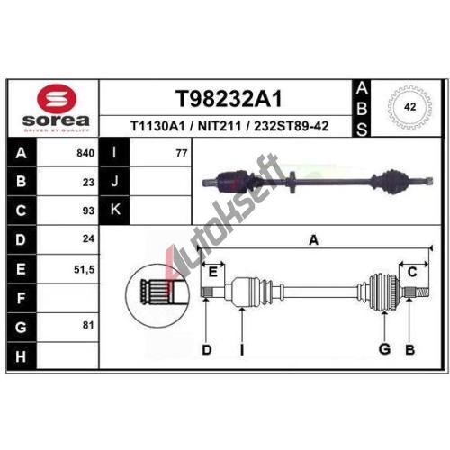 EAI Hnací hřídel EAI T98232A1, T98232A1