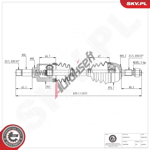 989,-ve skladuDélka [mm]: 618Vnější ozubení - strana u kola: 21Vnější ozubení - strana u diferenciálu: 22Vnitřní ozubení, strana u kola: 20Vnitř. zub, dif. strana, spoj. do převodovky: 19EAN:6928947310065Použitá čísla: GDS10009Skladem ve skladu