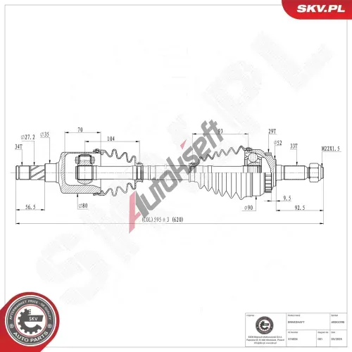 2 389,-ve skladuNový díl Průměr kloubu (strana kola) vnitřní [mm]: 90Průměr kloubu (strana převodovky) vnitřní [mm]: 91,7Délka [mm]: 595Velikost závitu: M20x1Vnější ozubení - strana u kola: 33Vnější ozubení - strana u diferenciálu: 34Průměr těsnícího kroužku [mm]: 52Počet zubů, ABS krouzek: 29Průměr kroužku ABS [mm]: 78,1Délka 2 [mm]: 78,2Použitá čísla: 237ST85-29, OPT213, T1761A1Skladem ve skladu