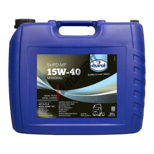 Eurol SHPD 15W-40 MF je motorový olej vhodný pro těžce zatížená užitková vozidla. Eurol SHPD 15W-40 MF může být také využíván u benzínových a LPG motorů. Eurol SHPD 15W-40 MF splňuje velké specifikací a proto je vhodný jako multifunkční motorový olej pro smíšenou flotilu.