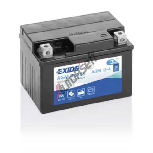 EXIDE 3Ah P, s.p. 50A, Bike Factory Sealed AGM, 12V, 113x70x85 EX AGM12-4, AGM12-4