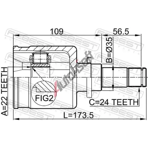 | Vnitř. zub, dif. strana, spoj. do převodovky: | 22 |