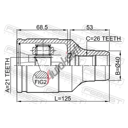 Délka [mm]: 125Vnější ozubení - strana u diferenciálu: 26Vnitř. zub, dif. strana, spoj. do převodovky: 21Průměr těsnícího kroužku [mm]: 40EAN:6928947378294Použitá číslaGCI57036