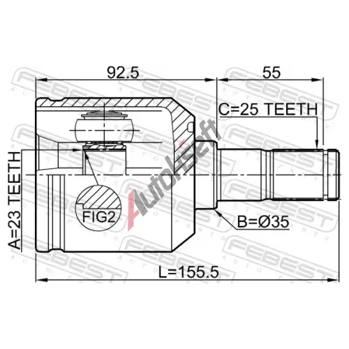 Délka [mm]: 155,5Vnější ozubení - strana u diferenciálu: 25Vnitř. zub, dif. strana, spoj. do převodovky: 23Průměr těsnícího kroužku [mm]: 35EAN:6920780837280Použitá číslaGCI39041