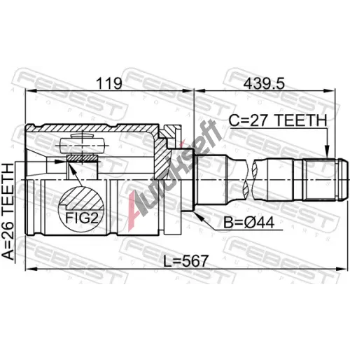 | Vnitř. zub, dif. strana, spoj. do převodovky: | 26 |