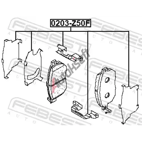 FEBEST Protihluková fólie, brzdové obložení (posunovací deska) FBS 0203-Z50F, 0203-Z50F