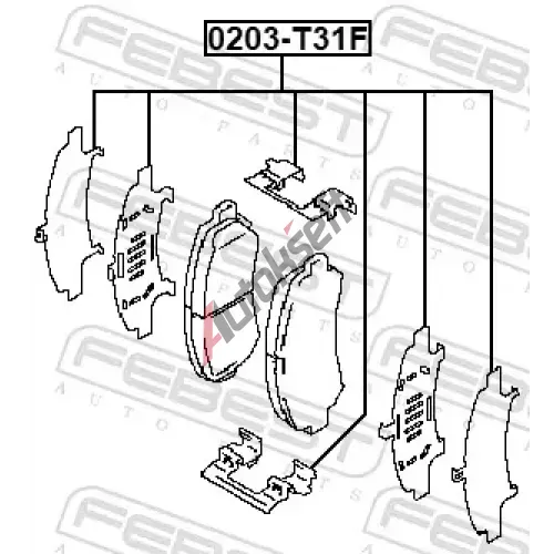 FEBEST Sada příslušenství obložení kotoučové brzdy FBS 0203-T31F, 0203-T31F