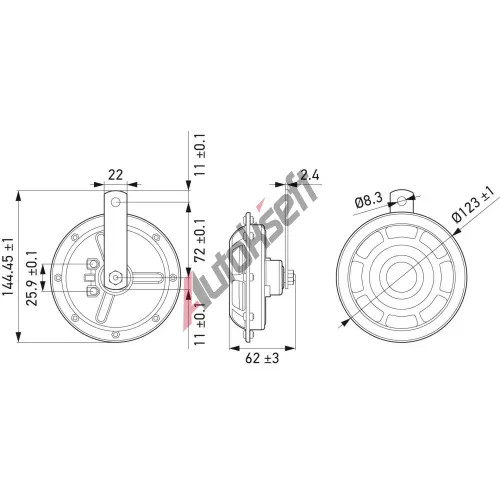 1 179,-ve skladuDruh provozu: elektrickýNapětí [V]: 12Spotřeba energie [W]: 66Hlučnost [dB(A)]: 118Frekvenční rozsah [Hz]: 300 500Příkon proudu [A]: 5,5Typ ochrany (IP-Kód): IP65Splňuje ECE normu: R28Typ povolení: Prověřeno dle ECEBarva krytu: červená/černáTón signálu: Hluboký tón Vysoký tónKvantita: 2Celková výška [mm]: 135šířka [mm]: 125Průměr [mm]: 123Hloubka (mm): 85Od rozsahu teploty [°C]: -40Rozsah teploty do [°C]: +60Způsob montáže: Plochá koncovka zás.Montáž/demontáž musí provést odborný personál! EAN:040823000023554082300002355Použitá čísla: E1 20033, B133 SET, B 133, 6036Skladem ve skladu