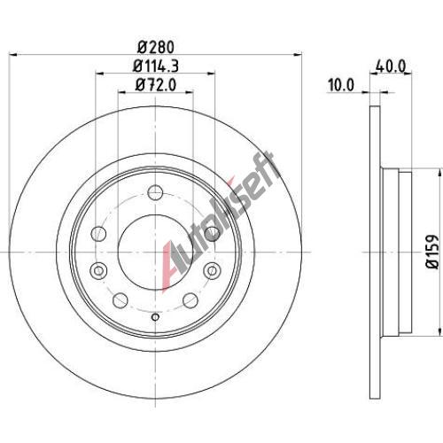 Montovaná strana: zadní nápravaSrovnávací průměr: 280Síla brzdového kotouče [mm]: 10Ráfek, počet děr: 5Počet upevňovacích otvorů: 3Tloušťka / síla [mm]: 40Vnější průměr [mm]: 280Kruhový vývrt ∅ [mm]: 114Povrch: nátěrTyp brzdového kotouče: plnýMinimální tloušťka [mm]: 8Centrovací průměr [mm]: 72Hmotnost [kg]: 4,250Dbejte servisních informací Hmotnost [kg]: 4,25EAN:5050063543605NahrazujeADM543101, ADM543106, ADM54360C, ADM54397