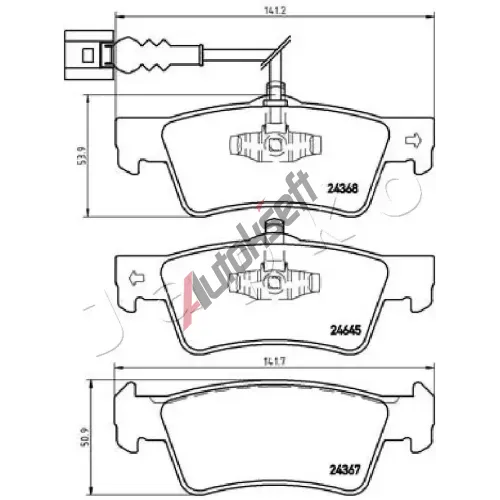 1 679,-ve skladuŠířka 1 [mm]: 141,3Výška 1 [mm]: 50,9Šířka 2 [mm]: 140,7Výška 2 [mm]: 53,9Tloušťka / síla [mm]: 19,1Uzavírací výstražný kontakt: včetně uzavíracího výstražného kontaktuPočet ukazatelů opotřebení [na nápravu]: 2Varovný odstup [mm]: 240Brzdový systém: ATEZkušební značka: E1 90R-011403/1460MAPP-kód k dispozici Přípustné pro výkon vozidla do [kW]: 225EAN:4006633374361Použitá čísla: 24367, 24368, 24556, LD7190Skladem ve skladu