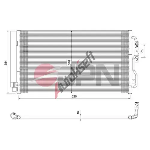 Všeobecné informace: The following information is for general and informational purposes only and does not constitute warranty terms. Warranty terms and conditions are available from our dealers and in our general terms and conditions of sale. Abakus spare/repair parts are intended only for vehicle repairs in order to restore their original functionality. Abakus spare/repair parts are used or sold to users only for the purpose of repairing vehicles to restore their original look and functionality and are not original/genuine/OE/OEM/OES replacement parts. These items do not originate from the vehicle manufacturer and may be the subject of a design not owned by Abakus and the manufacturer of this spare part. They may only be used for repairs to restore the intended vehicle to its original appearance. Our products are delivered without instruction of installation. Installation of our product may only be carried out by trained specialist technicians in specific car repairs. Products supplied by us are exclusively intended for proper and appropriate use. The warranty may become invalid in the event of: improper installation or repair, unsuitable application or use, installation or repair made outside specialist car workshops. Warranty claims are lost if the vehicle is modified and used for motor sports, tuning or similar events (except our tuning parts which are described in TecDoc and on our price list). Warranty application should include complete documentation among others: chassis no., first registration, vehicle mileage, information about LPG installation, fault memory log, pictures, our QC (quality check) code, installation invoice, contact details of the car repair workshop performing the replacement or repair. Warranty application are available in our Client Panel system. Complaints may require supplementing data such as error memory logs. Incomplete documentation may result in rejection of the claim. Any damage caused during transport is not considered quality damage and will be considered on an individual basis. The product is intended for use within the performance limits specified by the manufacturer and should only be used by qualified personnel who have been trained to operate this product. Before each use, the product should be checked for damage or fixing of its parts and not used if any defects or loose parts are found. Failure to follow the manufacturer's guidelines could result in potential product damage or even injury. Wear appropriate protective clothing if necessary when working with the product. MAGNETI MARELLI ‐ Kondenzátor klimatizace MAG 350203751000