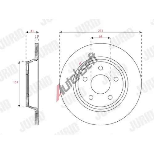 Srovnávací průměr: 271Typ brzdového kotouče: plnýSíla brzdového kotouče [mm]: 11Počet děr: 5Výška [mm]: 41Centrovací průměr [mm]: 63,6Vnější průměr [mm]: 271Povrch: nátěrMinimální tloušťka [mm]: 9EAN:8020584312988FORD2196429JX612A315AEAFORD (CHANGAN)JX612A315ACAKonkurenční kódy