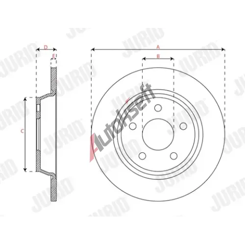 Srovnávací průměr: 271Typ brzdového kotouče: plnýPočet děr: 5Zkušební značka: E1 90R-02C0250/1401Povrch: nátěrVnější průměr [mm]: 271Síla brzdového kotouče [mm]: 11Minimální tloušťka [mm]: 9Centrovací průměr [mm]: 63,5Výška [mm]: 41EAN:5012759550731FORD2196429JX612A315AEAKonkurenční kódy