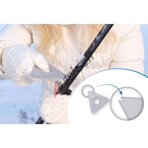 | V jednom z rohů břitu škrabky je šikovný zobáček určený pro očištění gum u stěračů od námrazy. | |